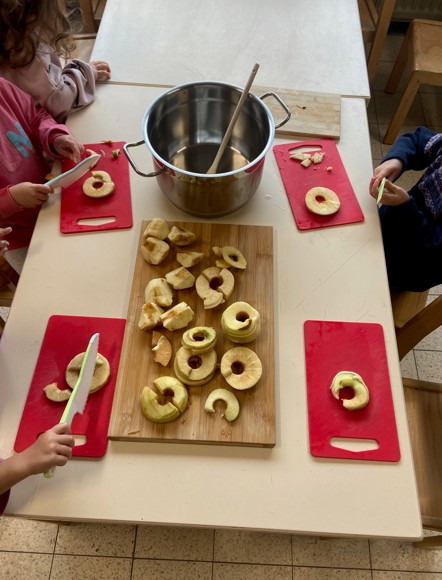 Le lendemain nous préparons notre délicieuse compote de pommes 🍏.